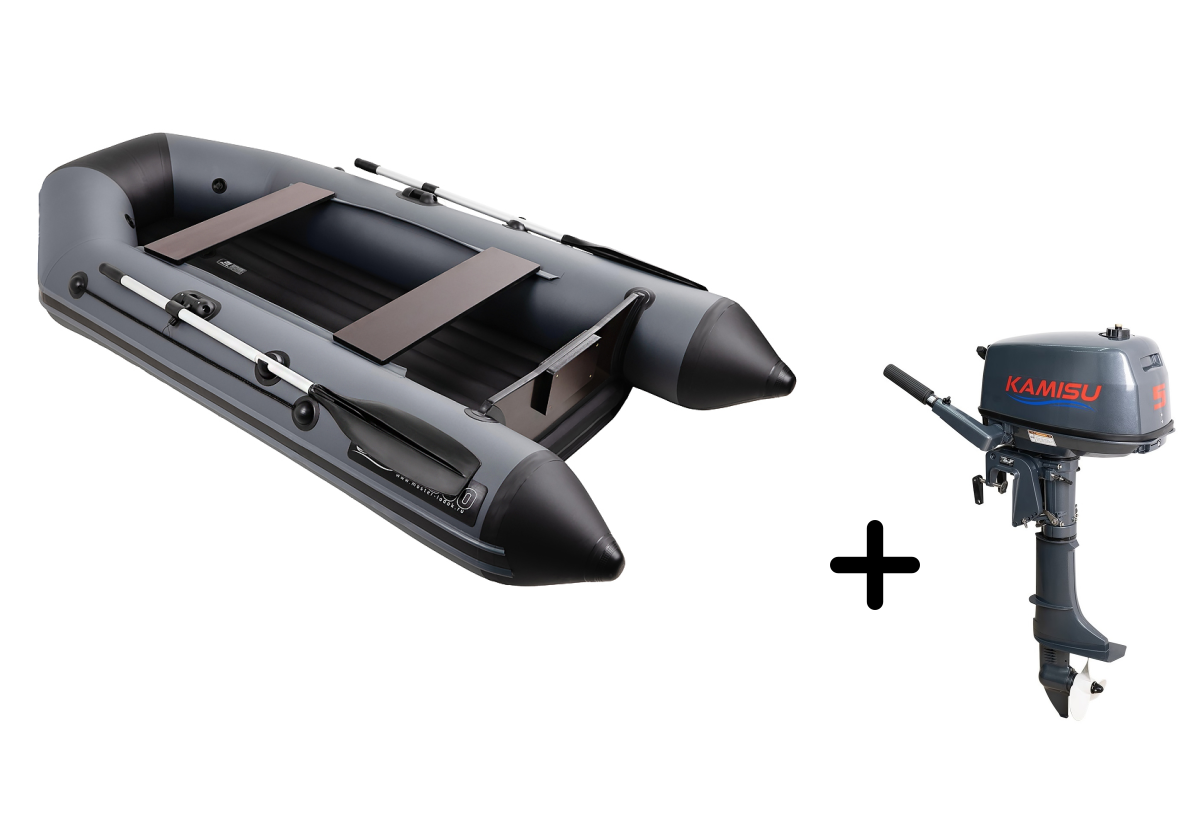 Представляем вашему вниманию профессиональный комплект для активного отдыха — надувная лодка Аква 2800 НДНД в стильном графитово-чёрном исполнении с экономичным мотором KAMISU T 5 BMS. Этот тандем создан для тех, кто ценит надёжность, комфорт и практичность.