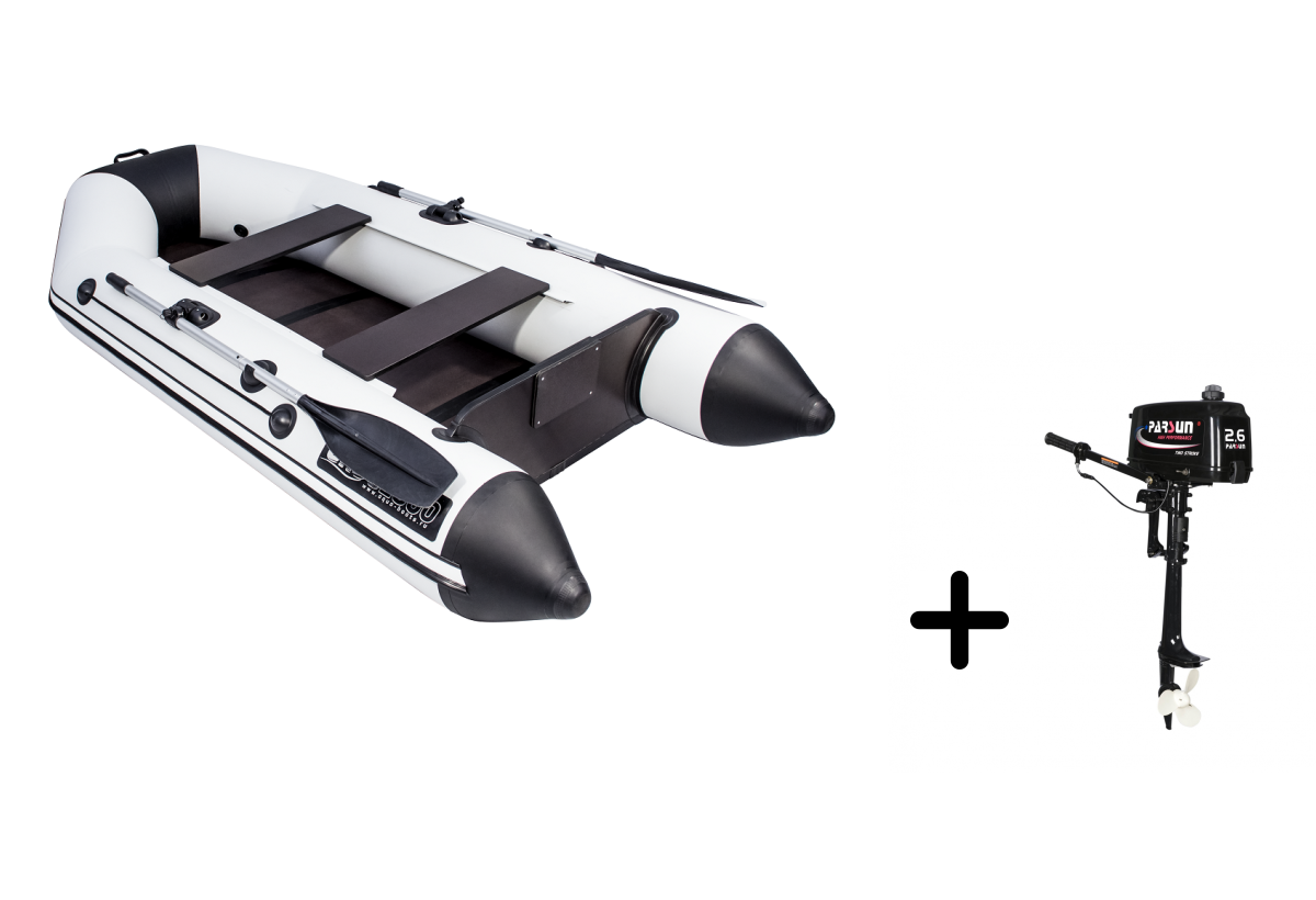 Представляем вашему вниманию маневренный комплект для рыбалки и путешествий — надувная лодка АКВА-2800 СК серо-черного цвета с экономичным мотором PARSUN T 2.6 BMS. Этот тандем создан для тех, кто ценит компактность и практичность.