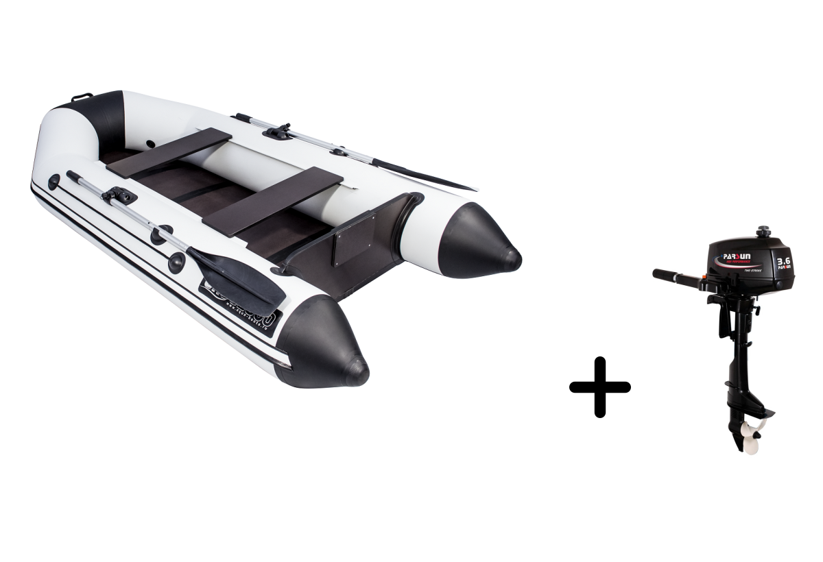 Представляем вашему вниманию компактный, но вместительный комплект для рыбалки и путешествий — надувная лодка АКВА-2800 СК в стильном серо-черном цвете с экономичным мотором PARSUN T 3.6 BMS. Этот тандем создан для тех, кто ценит комфорт и практичность.