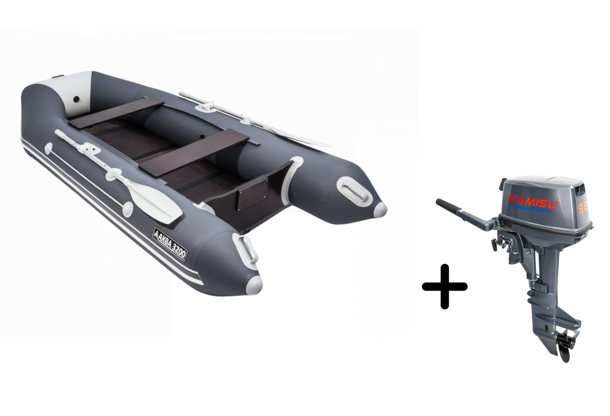 Представляем вашему вниманию элегантный комплект для рыбалки и путешествий — надувная лодка АКВА-3200 СКК в стильном серо-графитовом исполнении с мощным мотором KAMISU T 9.8 BMS. Этот тандем создан для тех, кто ценит комфорт, манёвренность и надёжность.