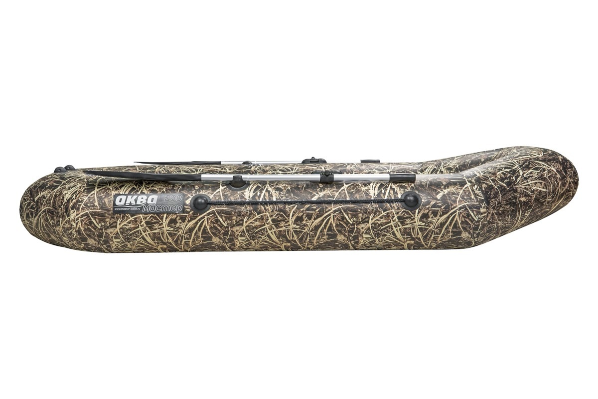Надувная ПВХ лодка «Аква Мастер 280» - легкое двухместное судно, предназначено для прибрежной рыбалки в закрытых водоемах и может эксплуатироваться в качестве судна для преодоления небольших водных преград при пеших походах, сбора стреляной дичи на утиной охоте. Бортовой баллон, диаметром 36 см имеет два независимых отсека, каждый из которых оснащен воздушным клапаном. Дно лодки приклеено к нижней касательной части борта, перекрывая его, тем самым, защищая от преждевременного истирания ткани баллона. При производстве этой модели используется ПВХ материал плотностью 750 г/кв.м зеленого или серого цвета. Габариты кокпита составляют 208 см по длине и 58 см по ширине.