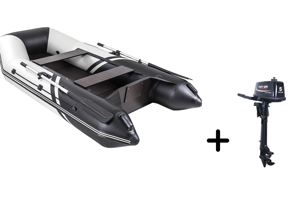 Представляем вашему вниманию практичный комплект для рыбалки и путешествий — надувная лодка БРОНЯ-280 в стильном бело-черном исполнении с экономичным мотором PARSUN T 5.0 BMS. Этот тандем создан для тех, кто ценит надёжность и комфорт.