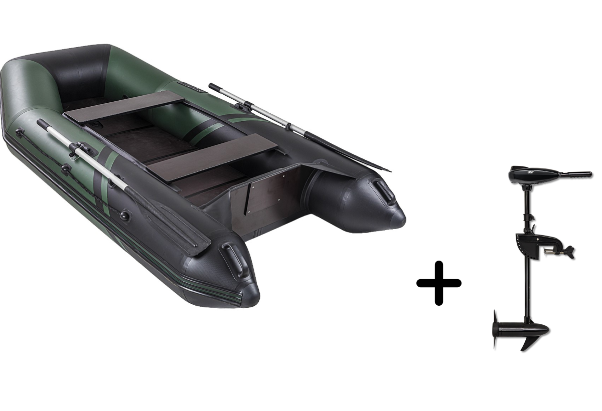 Представляем вашему вниманию стильный комплект для рыбалки и путешествий — надувная лодка БРОНЯ-280 СК в элегантном зелено-черном исполнении с электромотором BST 36 L. Этот тандем создан для тех, кто ценит комфорт, манёвренность и экологичность.