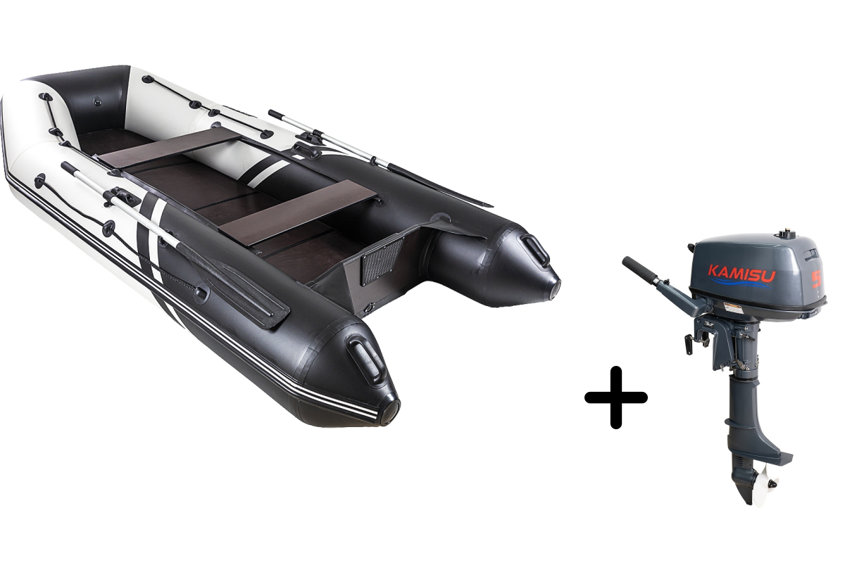 Представляем вашему вниманию практичный комплект для рыбалки и путешествий — надувная лодка БРОНЯ-320 С в элегантном бело-чёрном исполнении с экономичным мотором KAMISU T 5 BMS. Этот тандем создан для тех, кто ценит комфорт и функциональность.