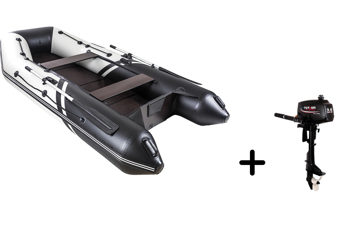 Представляем вашему вниманию практичный комплект для рыбалки и путешествий — надувная лодка БРОНЯ-320 С в стильном бело-чёрном исполнении с экономичным мотором PARSUN T 3.6 BMS. Этот тандем создан для тех, кто ценит комфорт и надёжность.