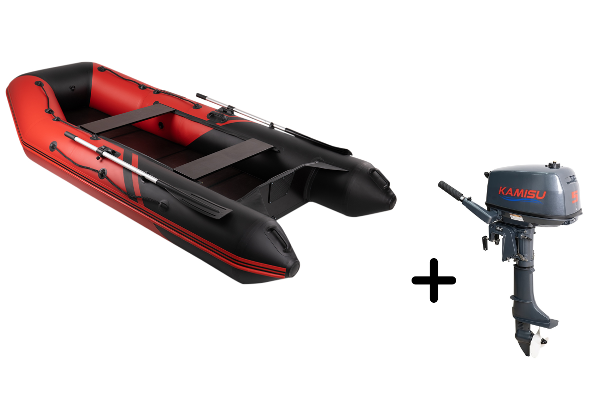 Представляем вашему вниманию стильный комплект для рыбалки и путешествий — надувная лодка БРОНЯ-320 СК в эффектном красно-черном исполнении с надежным мотором KAMISU T 5 BMS. Этот тандем создан для тех, кто ценит комфорт и практичность.