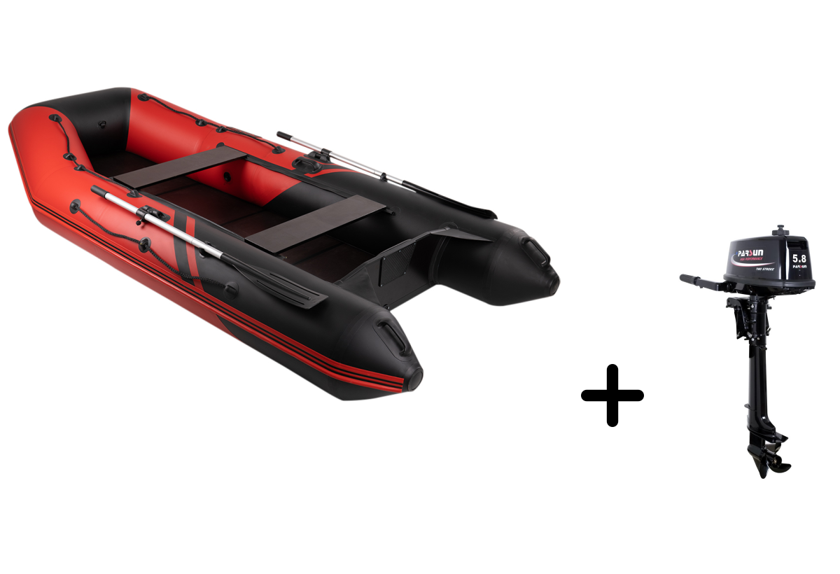 Представляем вашему вниманию стильное решение для рыбалки и путешествий — надувная лодка БРОНЯ-320 СК в динамичном красно-черном исполнении с надежным мотором PARSUN T 5.8 BMS. Этот тандем создан для тех, кто ценит комфорт и мощность.