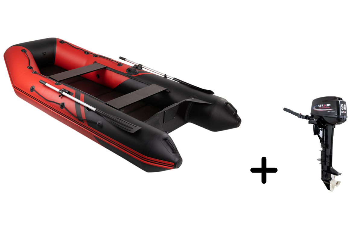Представляем вашему вниманию динамичный комплект для рыбалки и путешествий — надувная лодка БРОНЯ-320 СК в эффектном красно-чёрном исполнении с мощным мотором PARSUN T 9.8 BMS. Этот тандем создан для тех, кто ценит комфорт и высокую производительность.