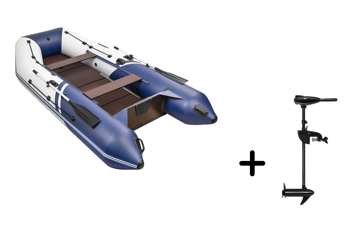 Представляем вашему вниманию элегантный комплект для рыбалки и путешествий — надувная лодка БРОНЯ-340 СК в стильном бело-синем исполнении с электромотором BST 55 L. Этот тандем создан для тех, кто ценит комфорт, манёвренность и экологичность.