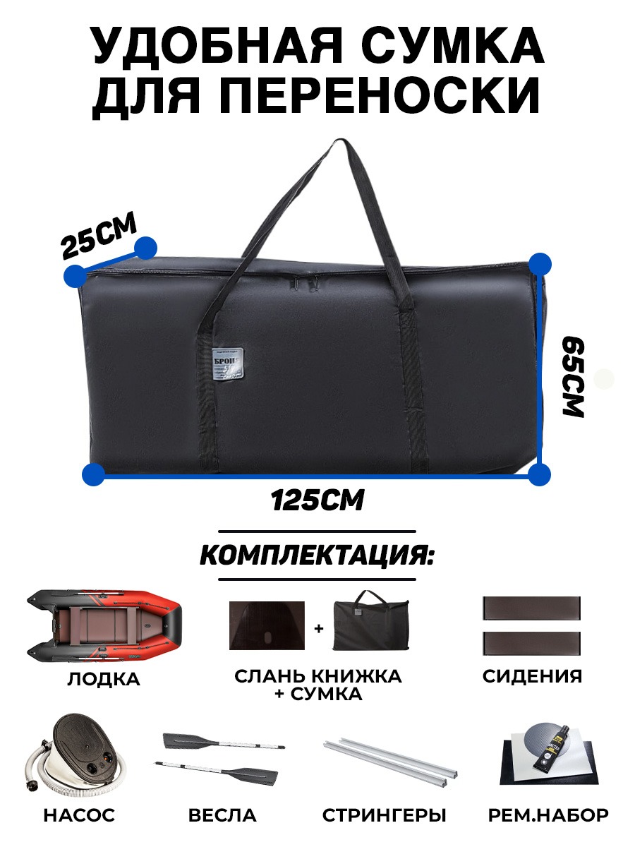 Броня-340 СК слань+киль красный-черный (Лодка ПВХ под мотор с усилением)