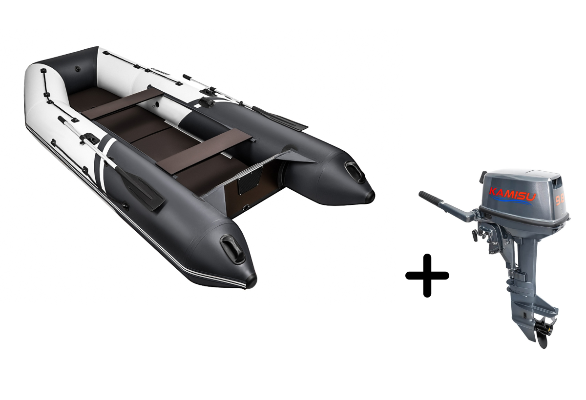 Представляем вашему вниманию просторный комплект для рыбалки и путешествий — надувная лодка БРОНЯ-360 СК в элегантном бело-черном исполнении с надежным мотором KAMISU T 9.8 BMS. Этот тандем создан для тех, кто ценит комфорт и свободу передвижения.