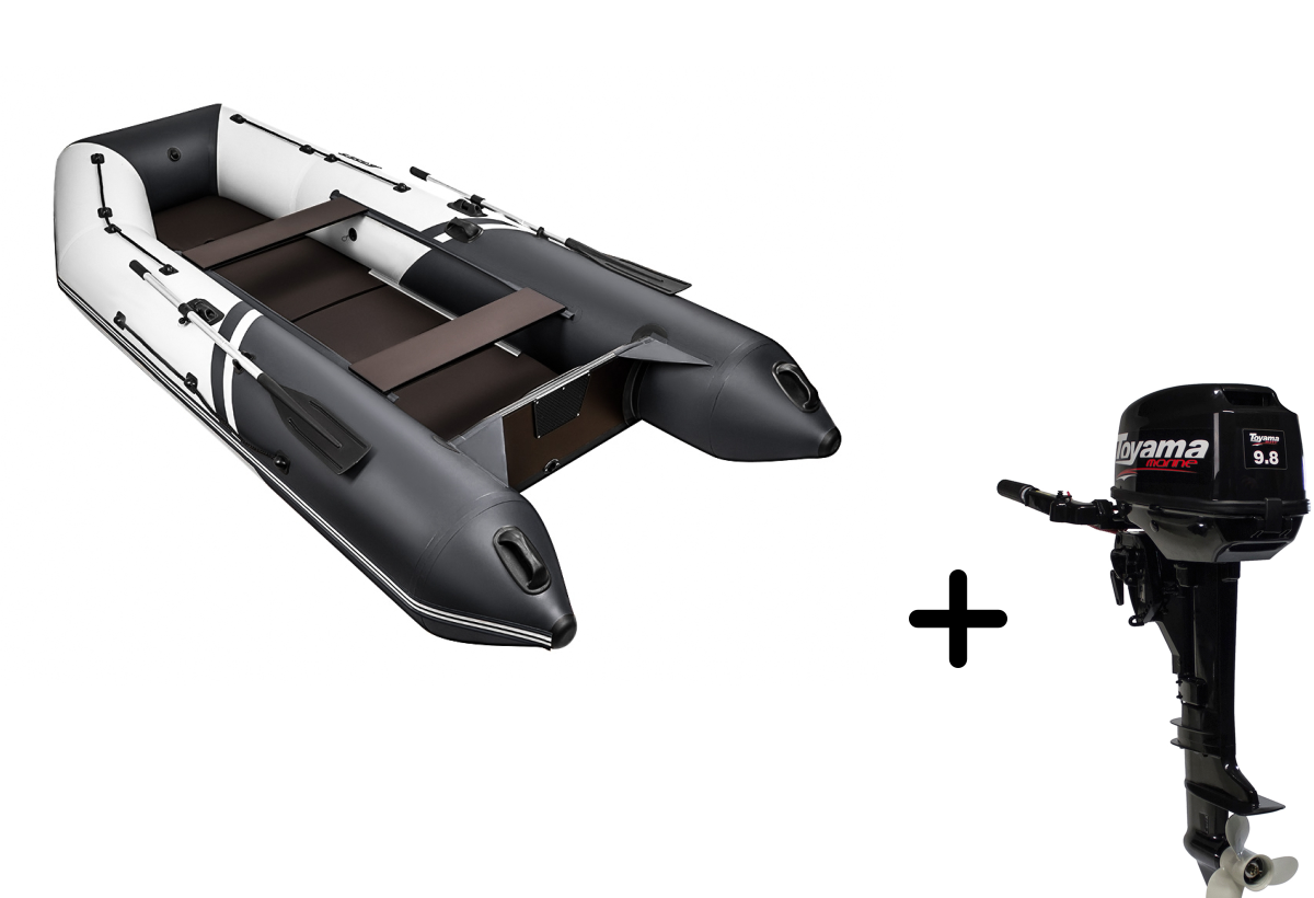 Представляем вашему вниманию вместительный комплект для рыбалки и путешествий — надувная лодка БРОНЯ-360 СК в элегантном бело-черном исполнении с мощным мотором TOYAMA T 9.8 BMS. Этот тандем создан для тех, кто ценит комфорт и высокую производительность.