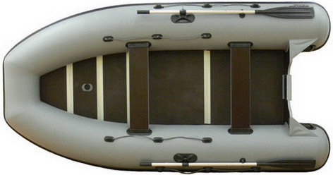 Лодка состоит из подковообразного баллона, разделенного на 3 независимых отсека с приклеенным нему днищем и установленным в корме транце для подвесного мотора. Килевые обводы корпуса лодки обеспечивает надувной киль, приклеенный к днищу, поверх которого укладывается жесткий разборный пайол. По бортам внутри корпуса приклеены держатели, в которые устанавливаются жесткие сиденья для пассажиров. Лодка оборудована 2-мя уключинами, обеспечивающими ее движение под веслами. На носу и корме лодки установлены ручки, служащие для ее переноски в рабочем состоянии. По бортам расположен леерный пояс, обеспечивающий страховку пассажиров. В сложенном состоянии лодка перевозится в трех упаковочных сумках. В стандартную комплектацию входят разборные алюминиевые весла. Для индивидуального дооснащения мы предлагаем серию аксессуаров: колёса на транец, сумки под банку, консоль дистанционного управления, тент.