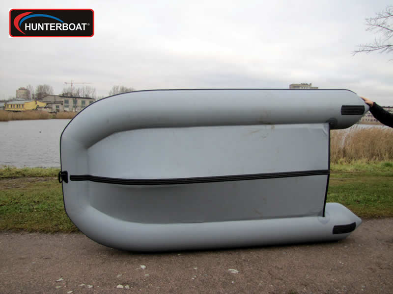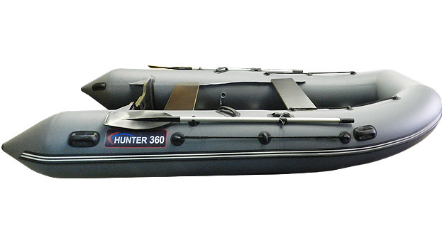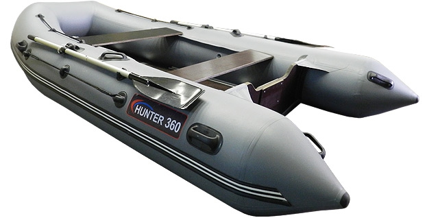 Новая надувная лодка Хантер 360 изготавливается из немецкой ткани ПВХ «Хайтекс». Плотность используемой ткани составляет 1050 гр/м.кв. и на корпусе и на днище. Надувные лодки Хантер 360 будут выпускаться только в серой цветовой гамме.