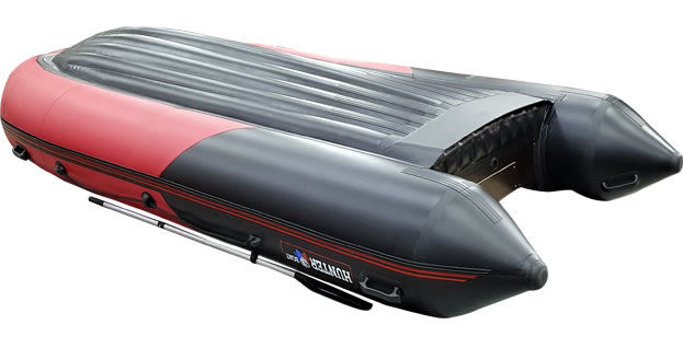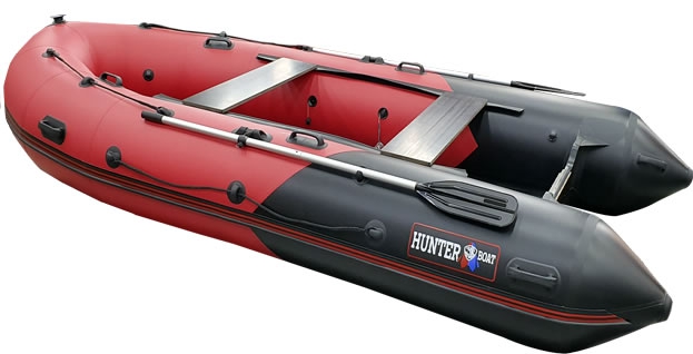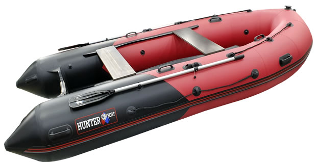 Надувная лодка Хантер 380 ПРО со стационарным вклеенным умеренно-килевым дном низкого давления (НДНД) рассчитана на использование с мотором до 25 л.с. с максимальной загрузкой до 750 кг. Предназначена для рыбалки, охоты и активного отдыха на воде небольшой компанией. Выпускается в двух расцветах - комбинированном красно/черном цвете и комбинированном камуфляж/черный