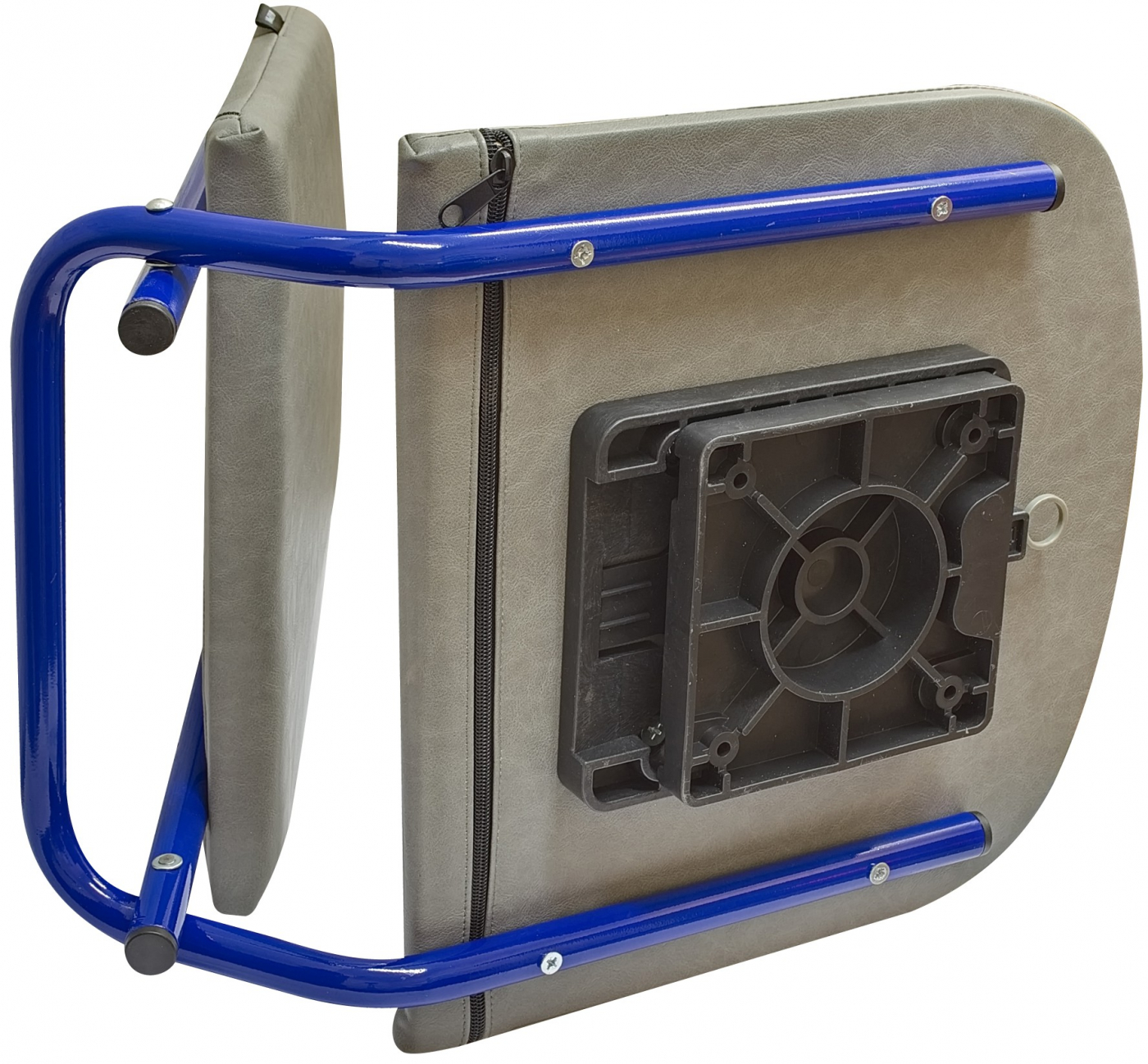 Складное кресло со спинкой, устанавливается в лодку путем прикручивания одной части механизма к сидению лодки, либо к любой другой поверхности. Вторая часть поворотного механизма находится на сидении, таким образом обе части поворотного механизма соединенные вместе образуют устойчивую конструкцию позволяющую креслу вертеться вокруг своей оси в восьми(8) положениях, тем самым позволяя выбрать необходимое направление при сидении в кресле. Материал кресла - металлические опоры и мягкая обивка из непромокаемого материала по типу экокожа.