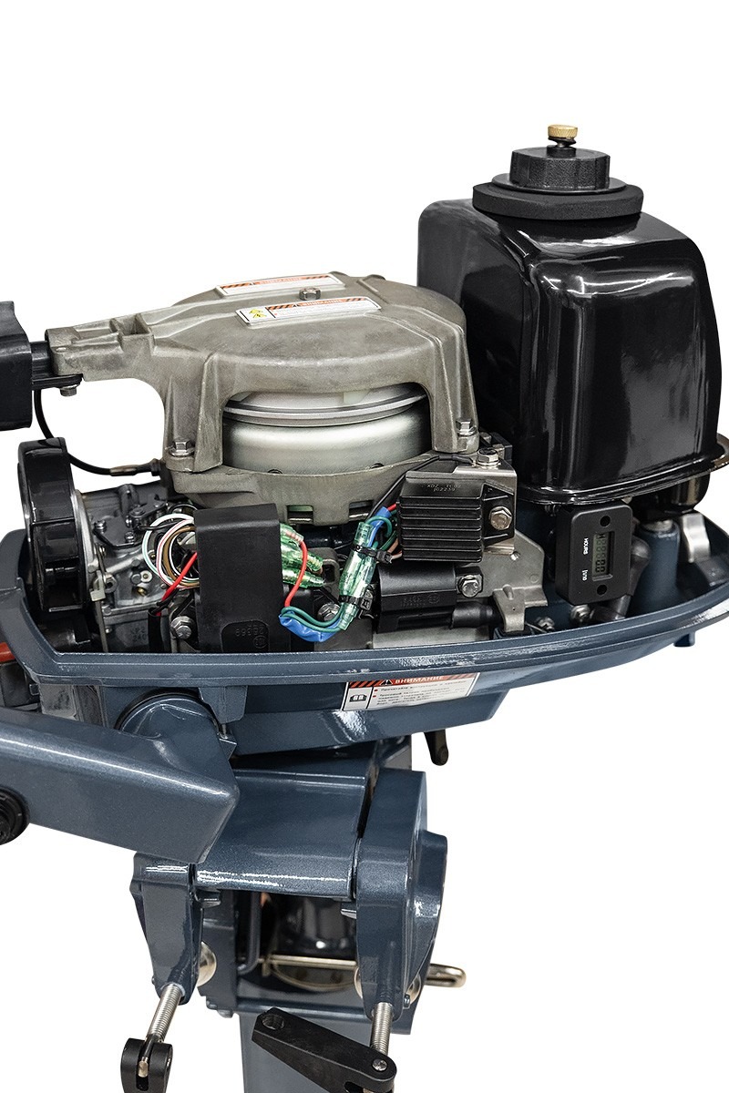Система зажигания TCI обеспечивает бесперебойную работу двигателя, а водяное охлаждение позволяет поддерживать оптимальную температуру в процессе работы. Лодочный мотор KAMISU T 6.8 BMS имеет всего один цилиндр, что делает его легким и удобным для транспортировки.