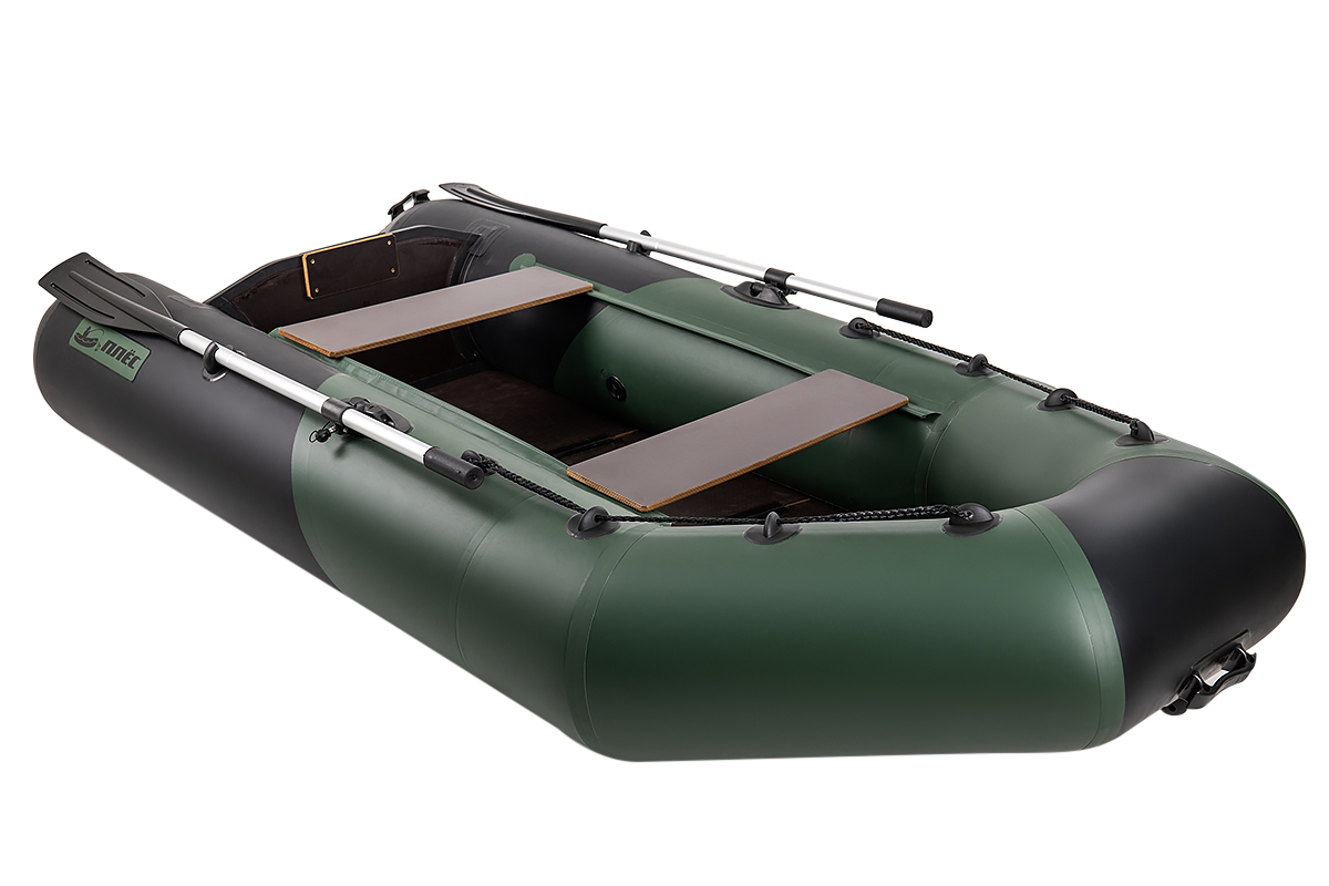 Комплектация Лодка, слань, 2 сиденья, 2 весла разборных, ножной насос 5 литров, рем. набор, сумка, паспорт изделия
