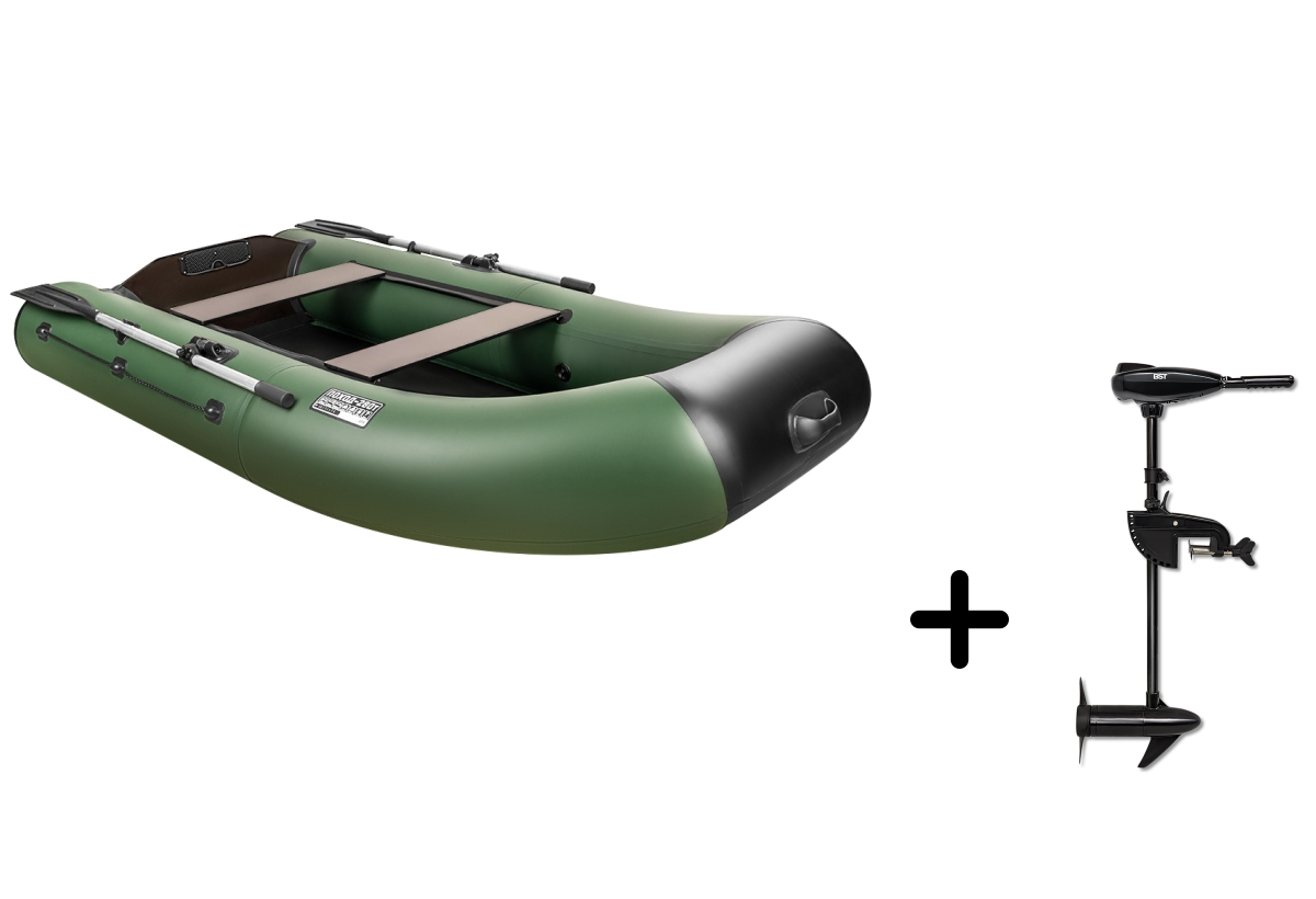 Представляем вашему вниманию идеальный комплект для рыбалки и путешествий — надувная лодка ПОХОД-280T в практичном зелёном цвете с мощным электромотором BST 36 L. Этот тандем создан для тех, кто ценит комфорт и экологичность.