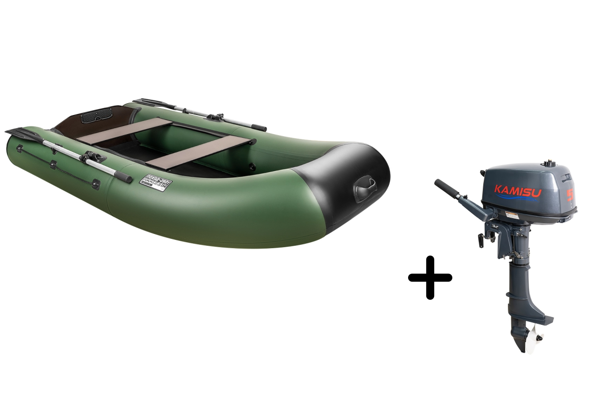 Представляем вашему вниманию практичный комплект для рыбалки и путешествий — надувная лодка ПОХОД-280T в ярком зеленом цвете с надёжным мотором KAMISU T 5 BMS. Этот тандем создан для тех, кто ценит комфорт и функциональность.