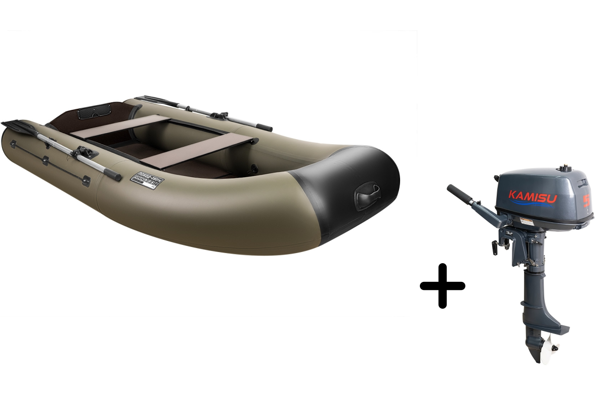 Представляем вашему вниманию практичный комплект для рыбалки и путешествий — надувная лодка ПОХОД 280TK в универсальном хаки цвете с экономичным мотором KAMISU T 5 BMS. Этот тандем создан для тех, кто ценит надёжность и функциональность.