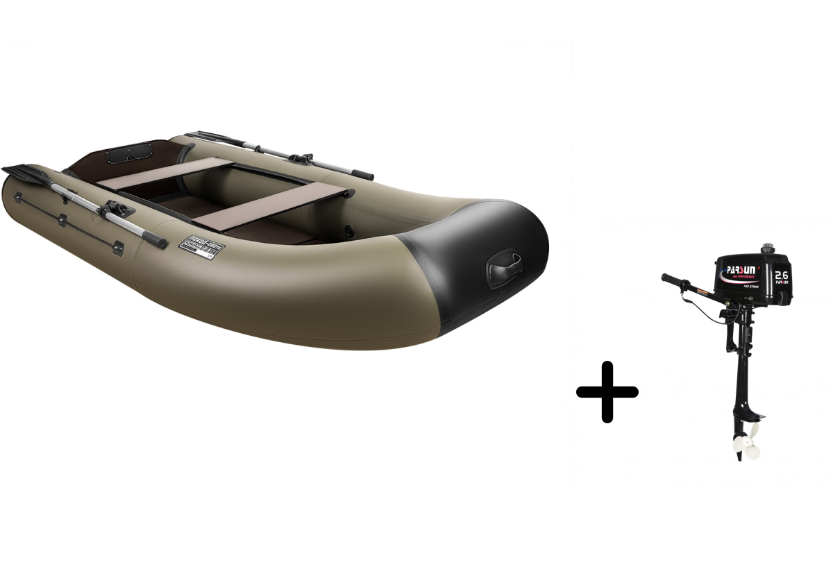 Представляем вашему вниманию компактный и надёжный комплект для рыбалки и путешествий — надувная лодка ПОХОД 280TK в практичном хаки исполнении с экономичным мотором PARSUN T 2.6 BMS. Этот тандем создан для тех, кто ценит манёвренность и комфорт.