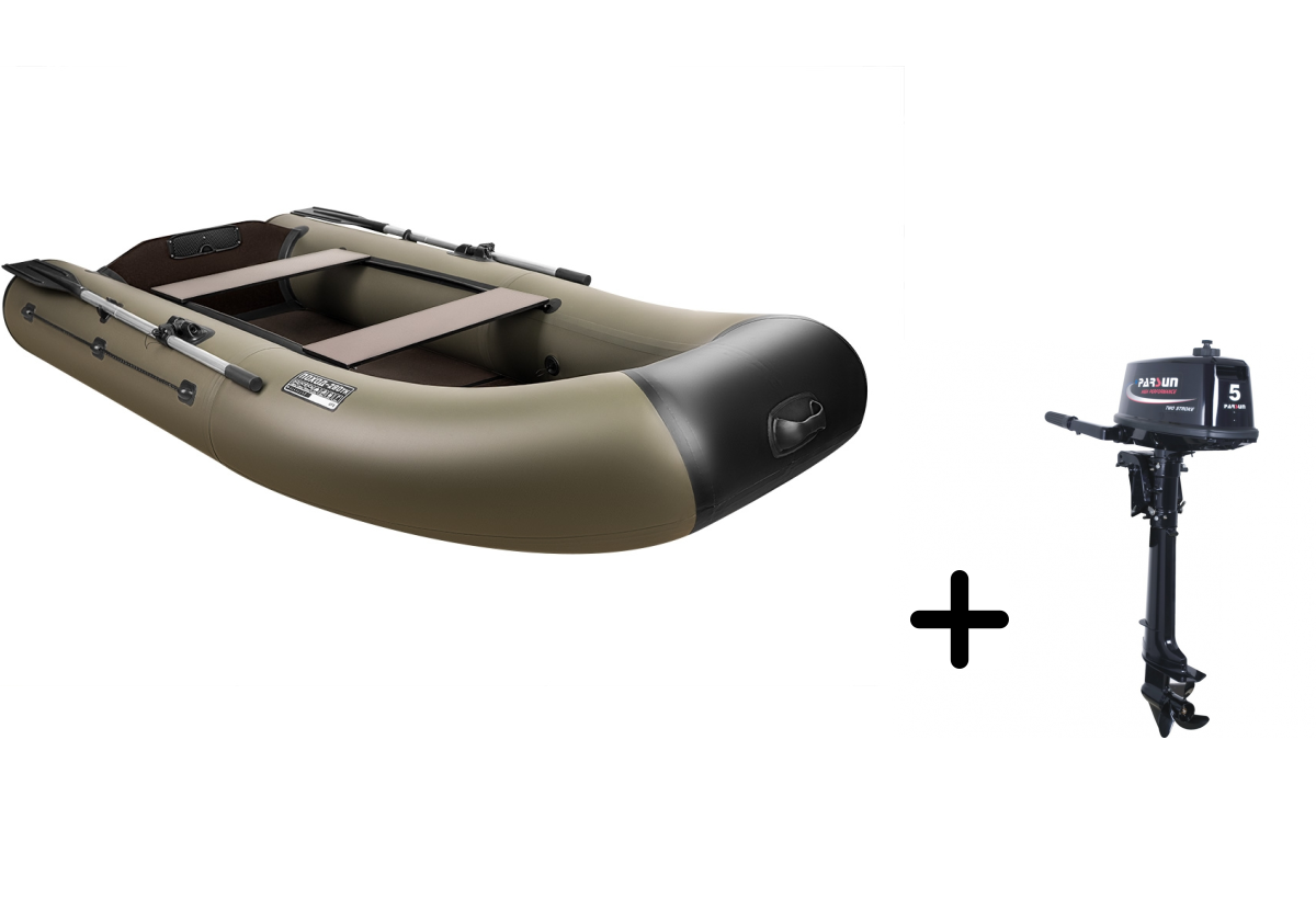 Представляем вашему вниманию практичный комплект для рыбалки и путешествий — надувная лодка ПОХОД 280TK в универсальном хаки цвете с экономичным мотором PARSUN T 5.0 BMS. Этот тандем создан для тех, кто ценит надёжность и функциональность.