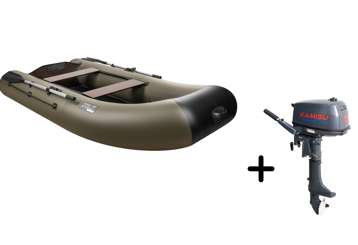 Представляем вашему вниманию практичный комплект для рыбалки и путешествий — надувная лодка ПОХОД 290T в универсальном камуфляжном исполнении с надёжным мотором KAMISU T 5 BMS. Этот тандем создан для тех, кто ценит надёжность и комфорт.