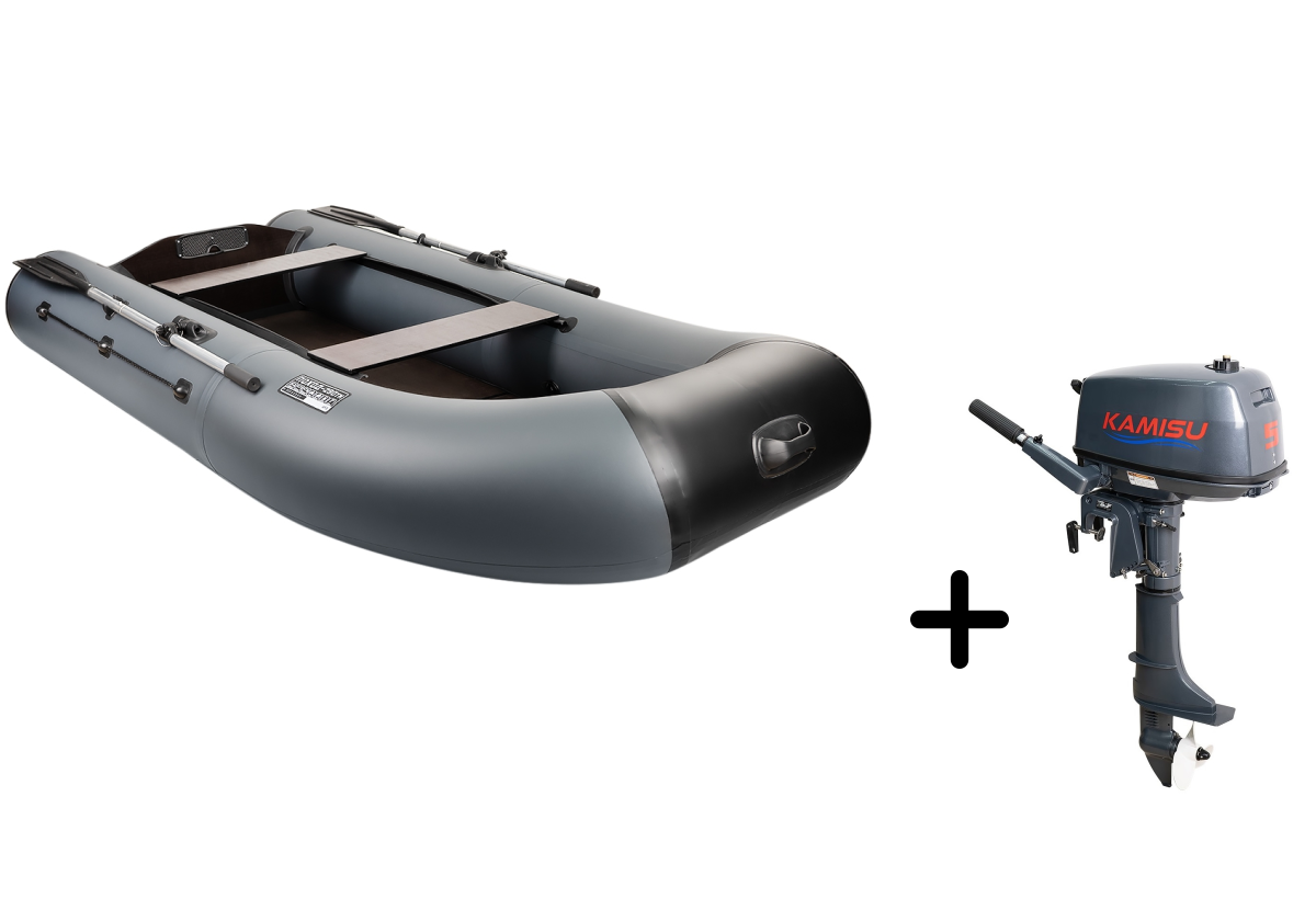 Представляем вашему вниманию практичный комплект для рыбалки и путешествий — надувная лодка ПОХОД 290TK в стильном сером цвете с экономичным мотором KAMISU T 5 BMS. Этот тандем создан для тех, кто ценит надёжность и функциональность.