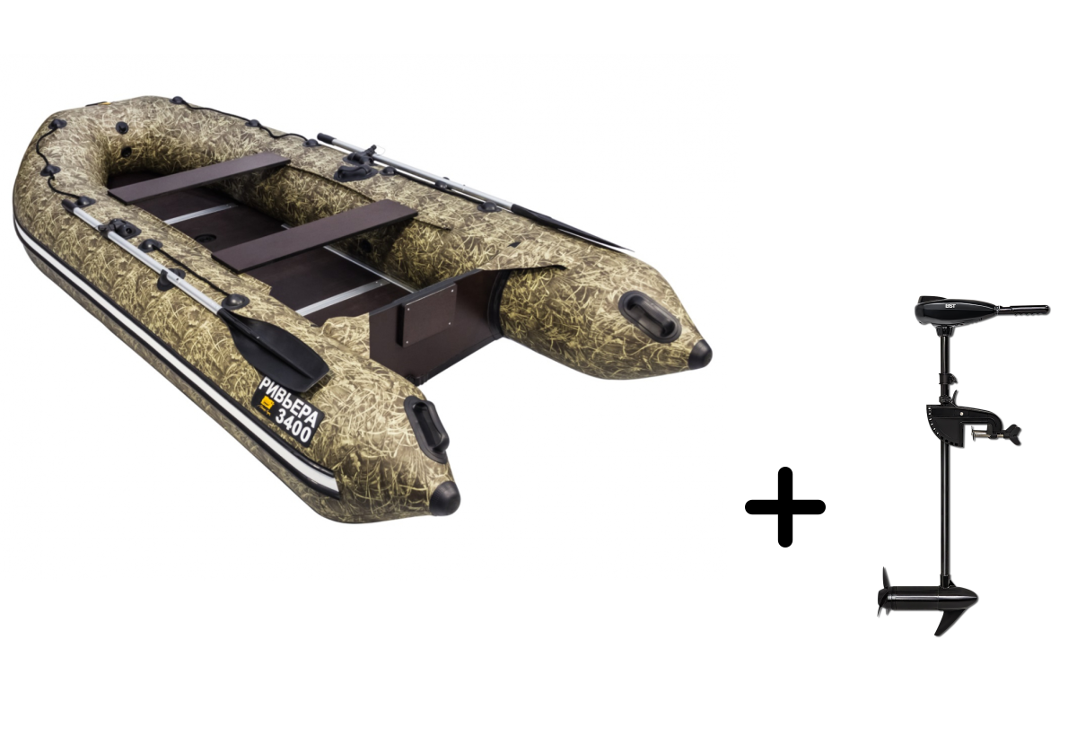 Представляем вашему вниманию мощный комплект для рыбалки и путешествий — надувная лодка РИВЬЕРА 3400 СК в маскировочном камуфляже с производительным электромотором BST 55 L. Этот тандем создан для тех, кто ценит комфорт и функциональность.