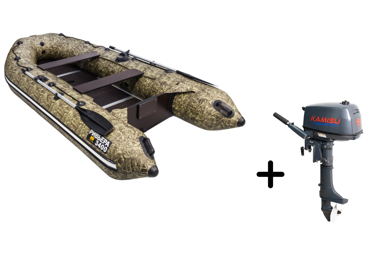 Представляем вашему вниманию практичный комплект для рыбалки и охоты — надувная лодка РИВЬЕРА 3400 СК в маскировочном камуфляже с надёжным мотором KAMISU T 5 BMS. Этот тандем создан специально для любителей активного отдыха на воде.