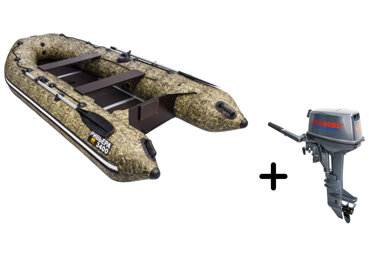 Представляем вашему вниманию профессиональный комплект для рыбалки и путешествий — надувная лодка РИВЬЕРА 3400 СК в практичном камуфляжном исполнении с мощным мотором KAMISU T 9.8 BMS. Этот тандем создан для тех, кто ценит надёжность и функциональность.