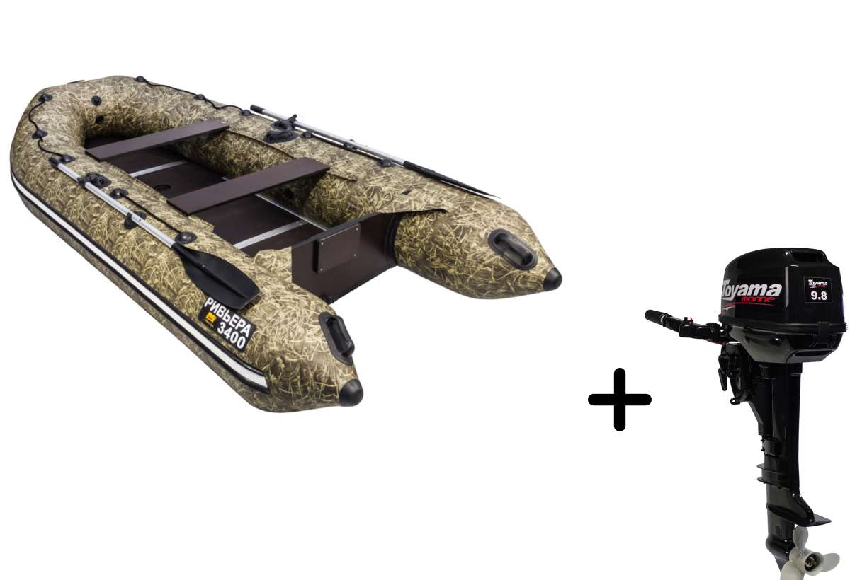 Ривьера 3400 СК камуфляж + Toyama T 9.8 BMS (комплект лодка + мотор)