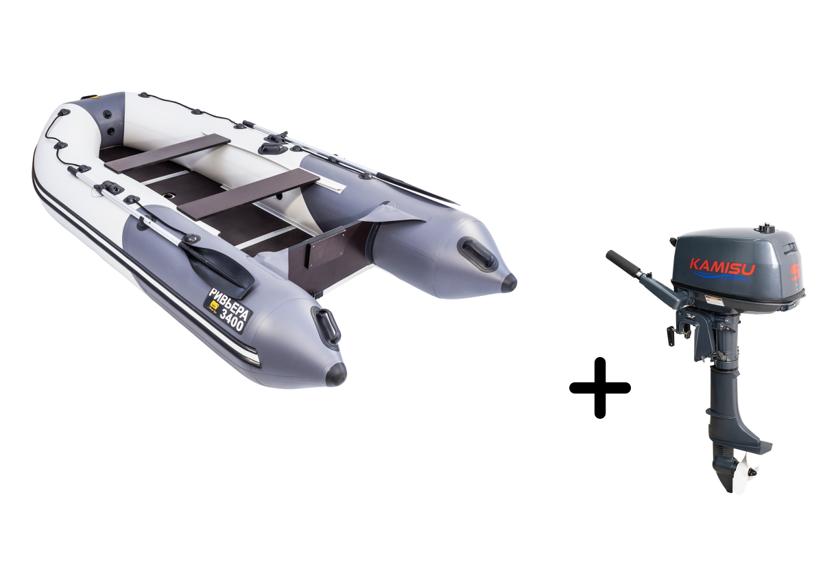 Представляем вашему вниманию элегантный комплект для рыбалки и путешествий — надувная лодка РИВЬЕРА 3400 СК Компакт в стильном серо-графитовом исполнении с надежным мотором KAMISU T 5 BMS. Этот тандем создан для тех, кто ценит комфорт и практичность.