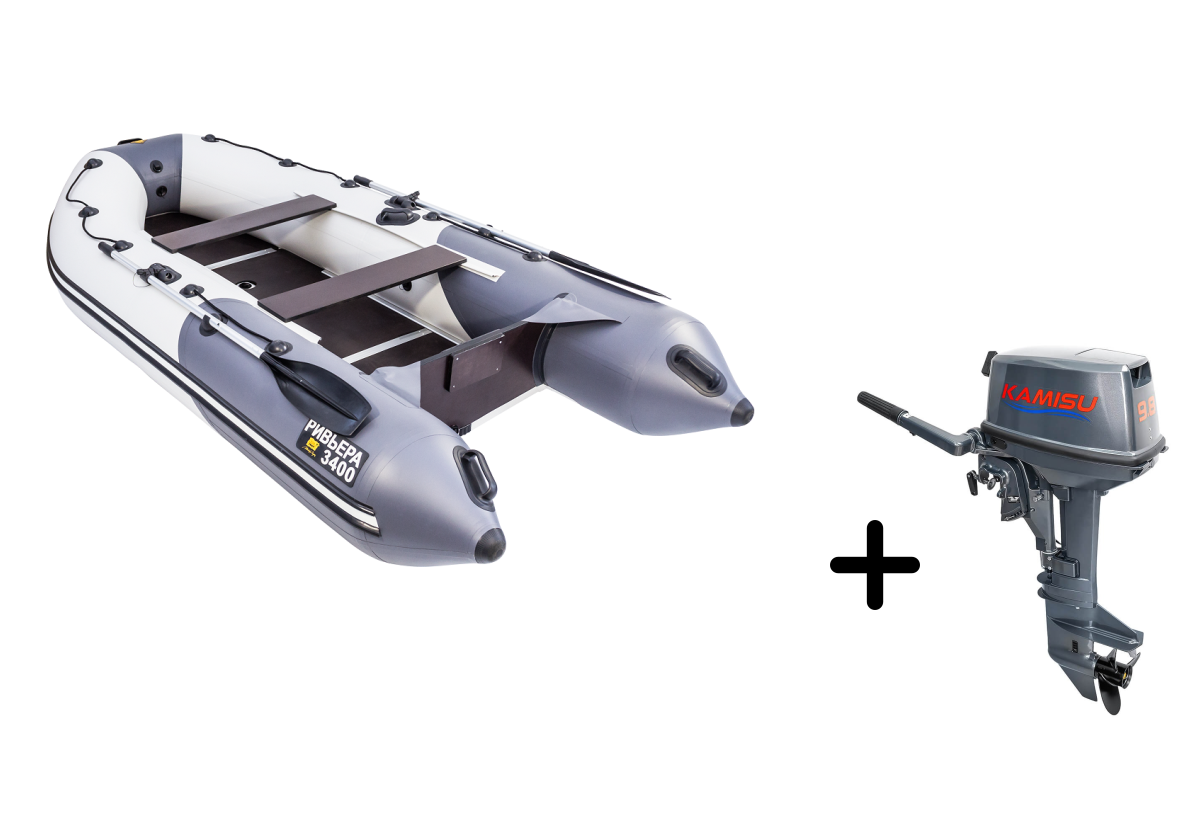 Представляем вашему вниманию стильное решение для рыбалки и путешествий — надувная лодка РИВЬЕРА 3400 СК Компакт в серо-графитовом исполнении с мощным мотором KAMISU T 9.8 BMS. Этот тандем создан для тех, кто ценит комфорт и функциональность.