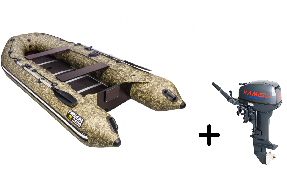 Представляем вашему вниманию профессиональный комплект для рыбалки и охоты — надувная лодка РИВЬЕРА 3600 СК Компакт в камуфляжной расцветке с надёжным мотором KAMISU T 9.9 BMS. Этот тандем создан специально для ценителей активного отдыха на воде.