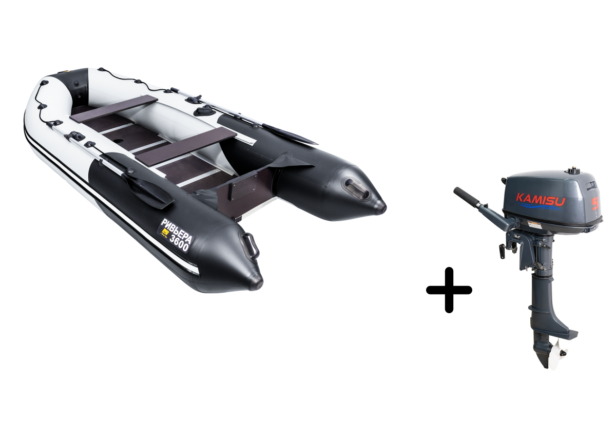 Представляем вашему вниманию практичный комплект для рыбалки и путешествий — надувная лодка РИВЬЕРА 3600 СК Компакт в стильном серо-черном исполнении с мотором KAMISU T 5 BMS. Этот тандем создан для тех, кто ценит надёжность и комфорт.