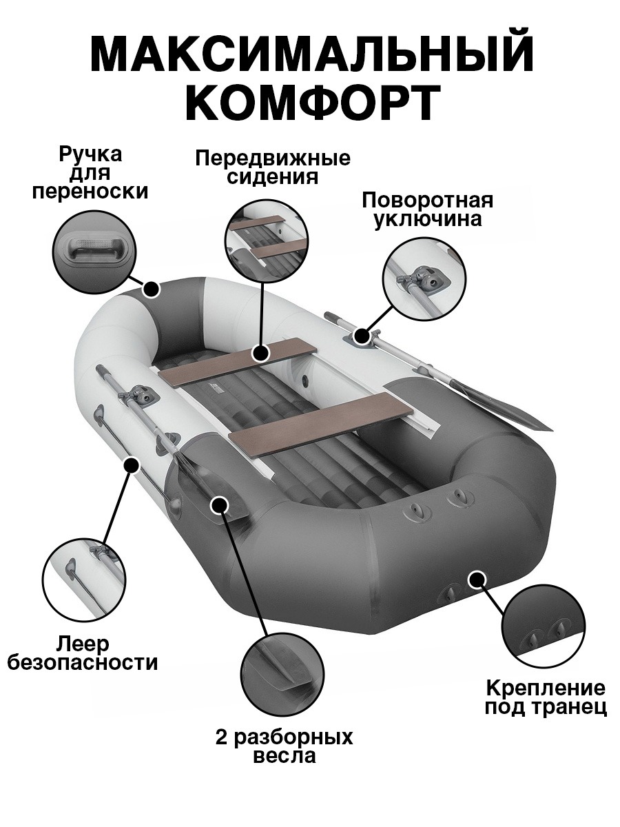 Говоря о небольшом размере и весе, стоит заметить, что лодка обладает отличной вместимостью, что важно для комфортного отдыха одному или в компании друга-единомышленника!