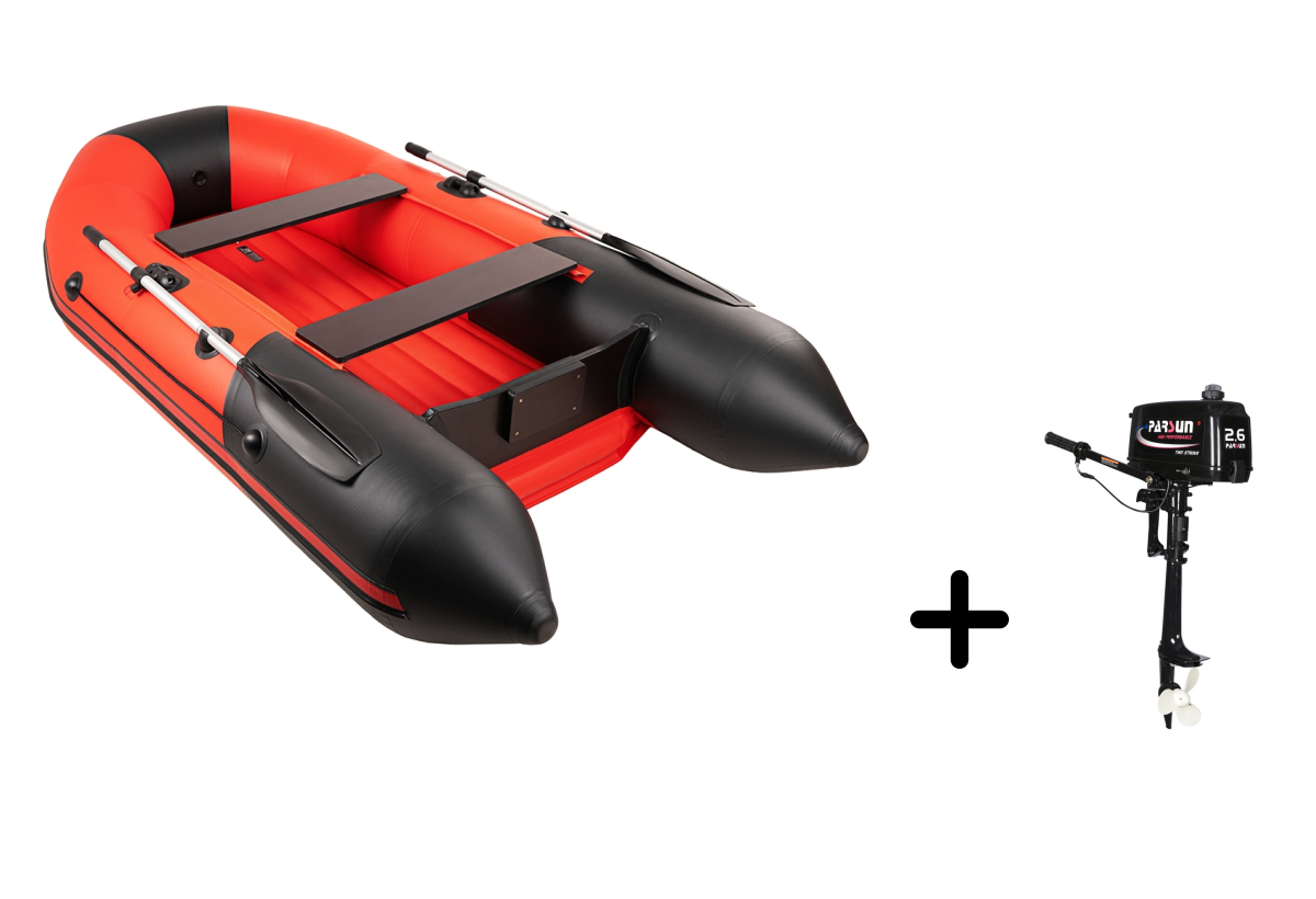 Представляем вашему вниманию комплект для рыбалки и путешествий — надувная лодка ТАЙМЕНЬ NX 2800 НДНД в стильном красно-черном исполнении с мотором PARSUN T 2.6 BMS. Этот тандем создан для тех, кто ценит стиль и функциональность.