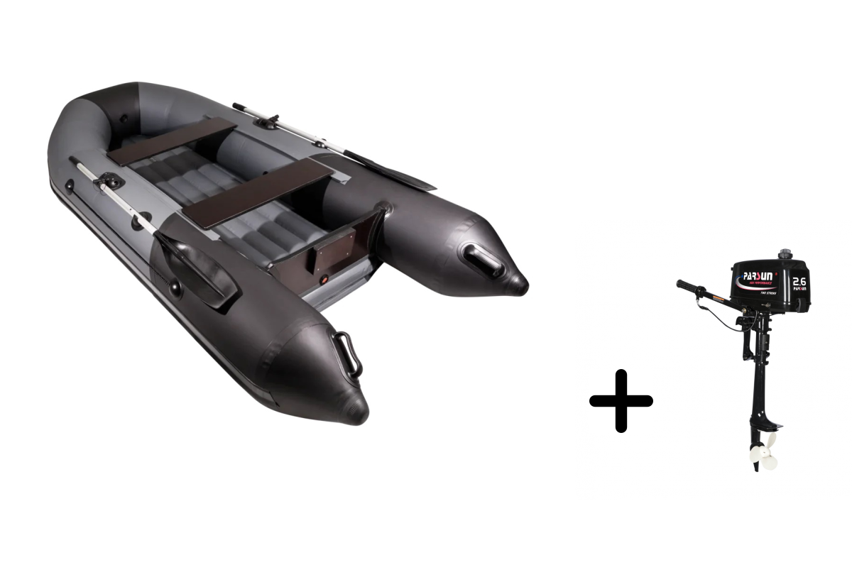 Представляем вашему вниманию профессиональный комплект для рыбалки и путешествий — надувная лодка ТАЙМЕНЬ NX 2900 НДНД в стильном графит-черном исполнении с мотором PARSUN T 2.6 BMS. Этот тандем создан для тех, кто ценит надёжность и функциональность.