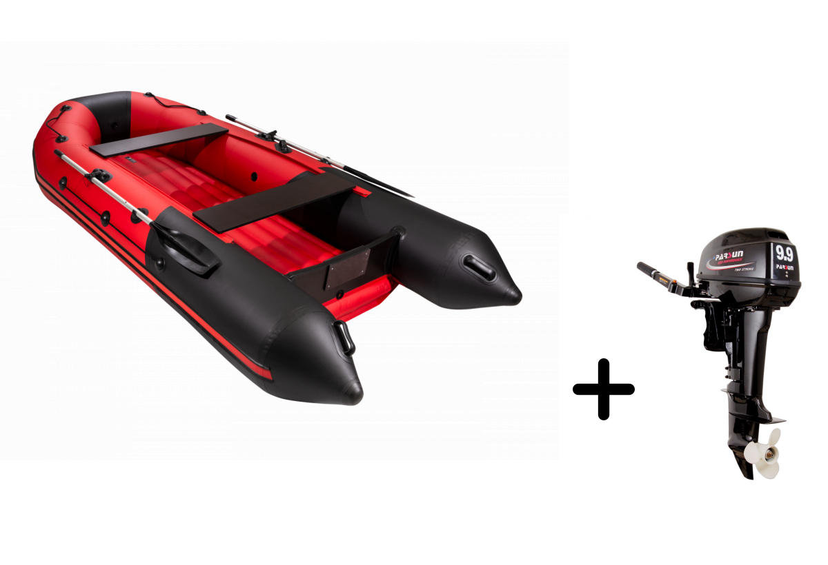 Представляем современный комплект, созданный для тех, кто ценит комфорт, надежность и впечатляющий дизайн. Сочетание стильной лодки в красно-черной цветовой гамме и мощного мотора идеально подойдет как для рыбалки, так и для захватывающих путешествий по воде.