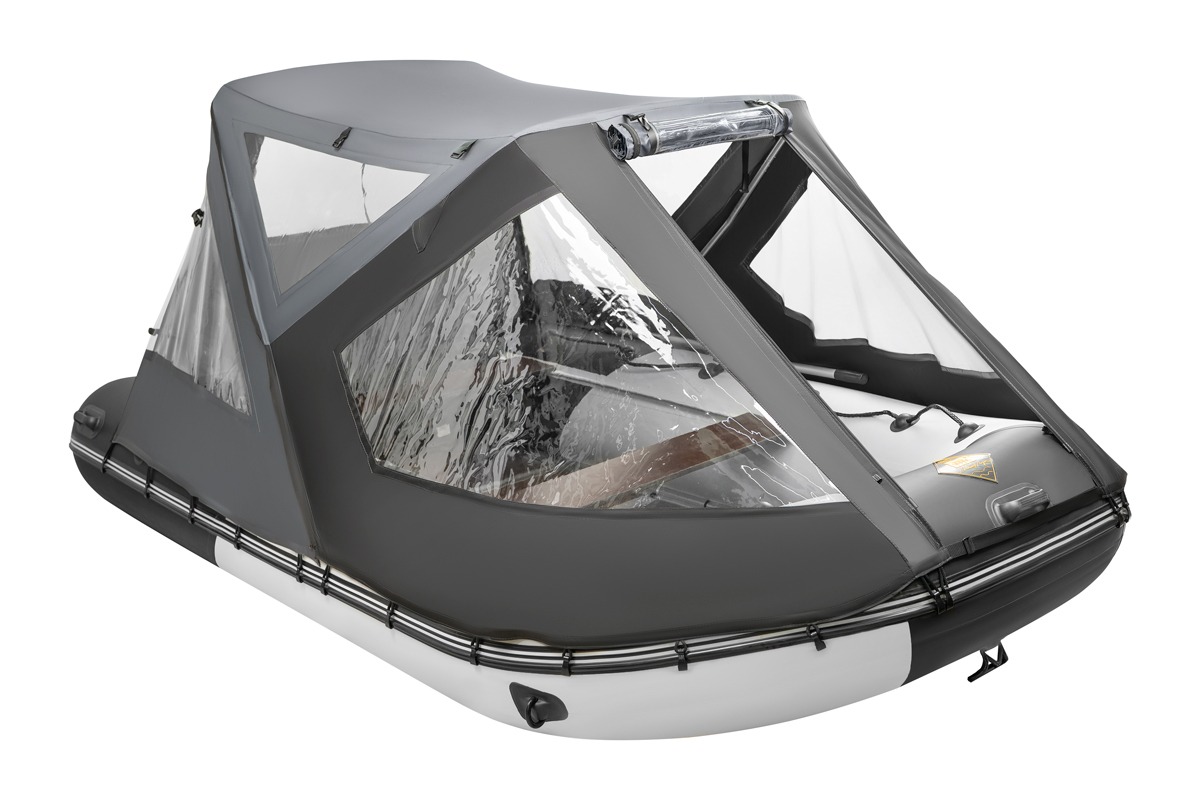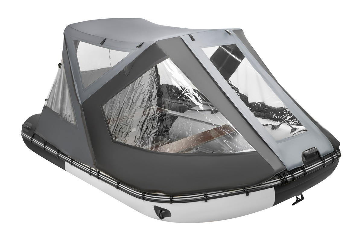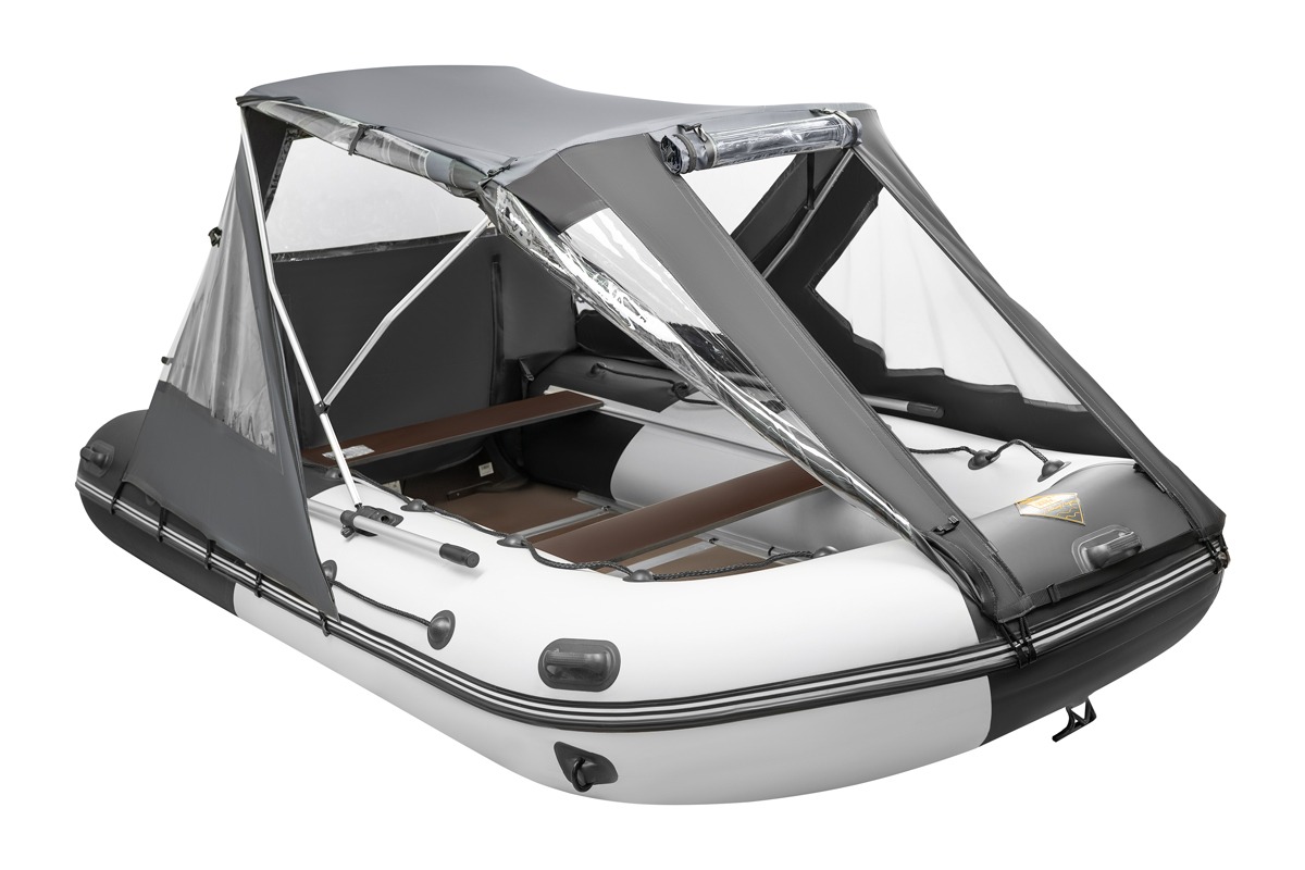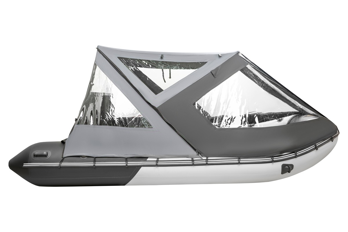 Ходовой тент трансформер или как его еще называют тент палатка на лодку самое популярное изделие среди владельцев маломерных судов, будь то надувная лодка из пвх ткани или пластиковая лодка или РИБ. Конструкция тента трансформера позволяет чувствовать себя уверенным на воде вне зависимости от погодных условий. Варианты трансформации тента позволяют открыть любую сторону лодки будь то нос, корма или боковина, при этом остальные части тента остаются на каркасе и могут защищать от ветра или палящих лучей солнца. Если тент на лодку не нужен его легко снять вместе с каркасом, либо сложить на нос лодки в удобный чехол. Тент трансформер крепится за счет алюминиевого каркаса который держится на опорах приклеенных на баллоны (крепеж, клей и подробная инструкция по установке входит в комплект) лодки и крючков крепящихся за привал находящийся по всему периметру лодки, в случаи когда лодка не снабжена привальным брусом в комплект ходового тента входит отдельный крепеж в виде грибков которые наклеиваются на баллон также по инструкции .