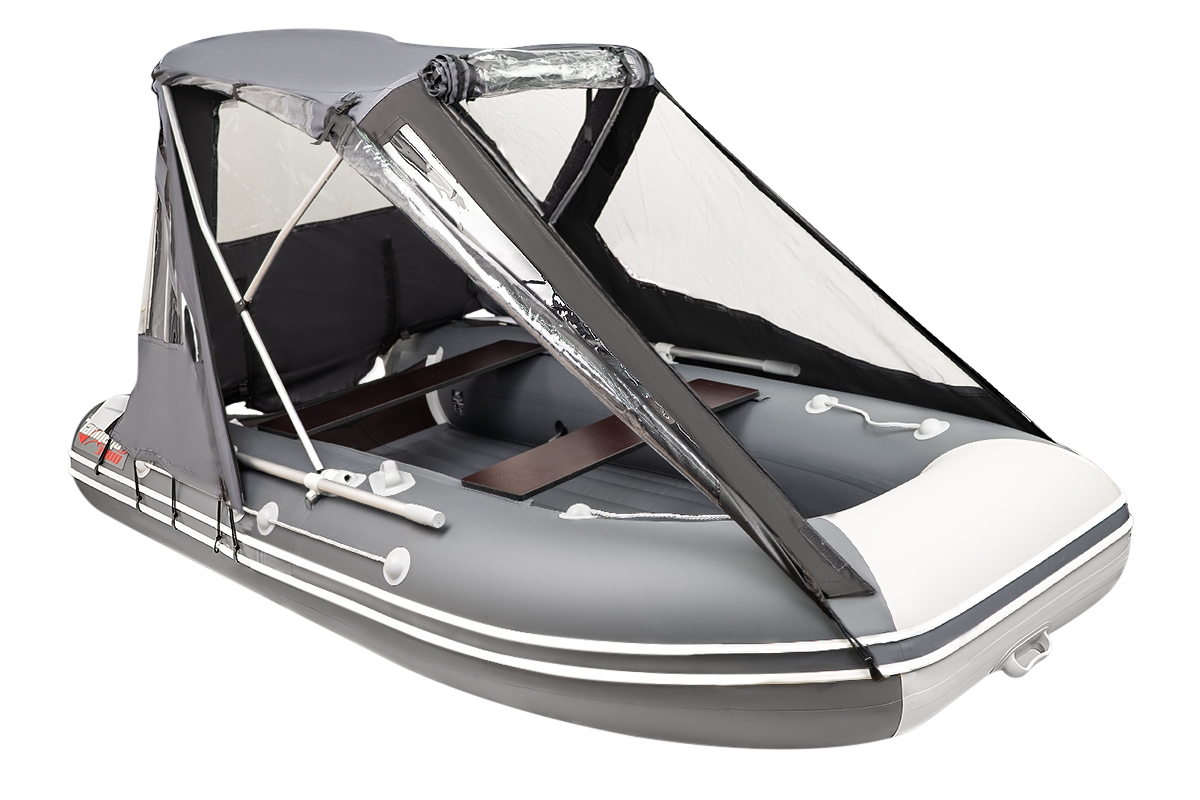 Ходовой тент трансформер или как его еще называют тент палатка на лодку самое популярное изделие среди владельцев маломерных судов, будь то надувная лодка из пвх ткани или пластиковая лодка или РИБ. Конструкция тента трансформера позволяет чувствовать себя уверенным на воде вне зависимости от погодных условий. Варианты трансформации тента позволяют открыть любую сторону лодки будь то нос, корма или боковина, при этом остальные части тента остаются на каркасе и могут защищать от ветра или палящих лучей солнца. Если тент на лодку не нужен его легко снять вместе с каркасом, либо сложить на нос лодки в удобный чехол. Тент трансформер крепится за счет алюминиевого каркаса который держится на опорах приклеенных на баллоны (крепеж, клей и подробная инструкция по установке входит в комплект) лодки и крючков крепящихся за привал находящийся по всему периметру лодки, в случаи когда лодка не снабжена привальным брусом в комплект ходового тента входит отдельный крепеж в виде грибков которые наклеиваются на баллон также по инструкции .