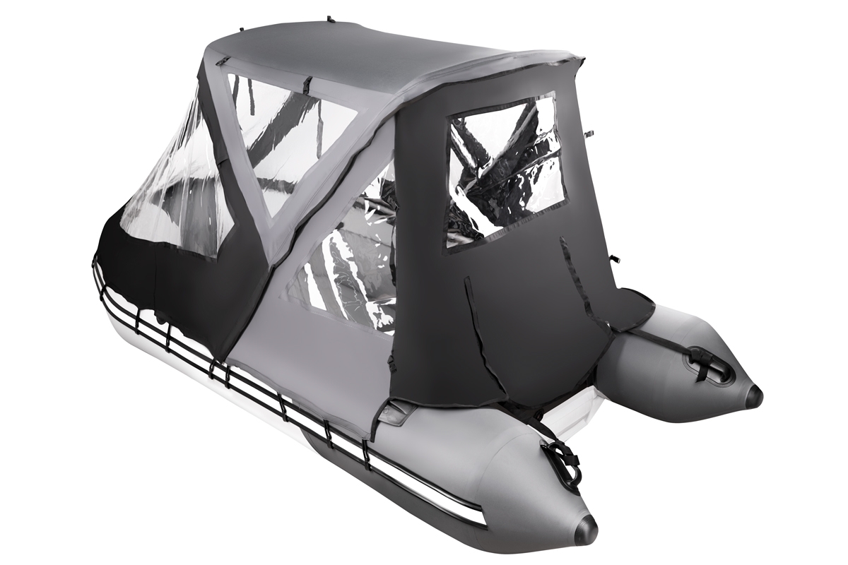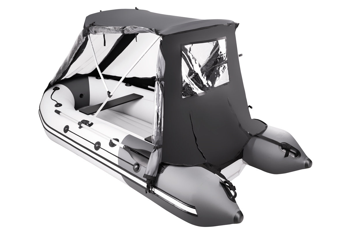 Ходовой тент трансформер или как его еще называют тент палатка на лодку самое популярное изделие среди владельцев маломерных судов, будь то надувная лодка из пвх ткани или пластиковая лодка или РИБ. Конструкция тента трансформера позволяет чувствовать себя уверенным на воде вне зависимости от погодных условий. Варианты трансформации тента позволяют открыть любую сторону лодки будь то нос, корма или боковина, при этом остальные части тента остаются на каркасе и могут защищать от ветра или палящих лучей солнца. Если тент на лодку не нужен его легко снять вместе с каркасом, либо сложить на нос лодки в удобный чехол. Тент трансформер крепится за счет алюминиевого каркаса который держится на опорах приклеенных на баллоны (крепеж, клей и подробная инструкция по установке входит в комплект) лодки и крючков крепящихся за привал находящийся по всему периметру лодки, в случаи когда лодка не снабжена привальным брусом в комплект ходового тента входит отдельный крепеж в виде грибков которые наклеиваются на баллон также по инструкции .