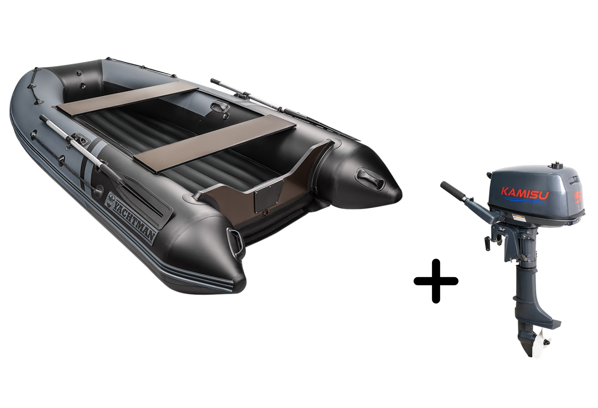 Представляем вашему вниманию профессиональный комплект для активного отдыха — надувная лодка YACHTMAN-320 НДНД в стильном серо-чёрном исполнении с надёжным мотором KAMISU T 5 BMS. Этот тандем создан для тех, кто ценит комфорт, безопасность и надёжность.