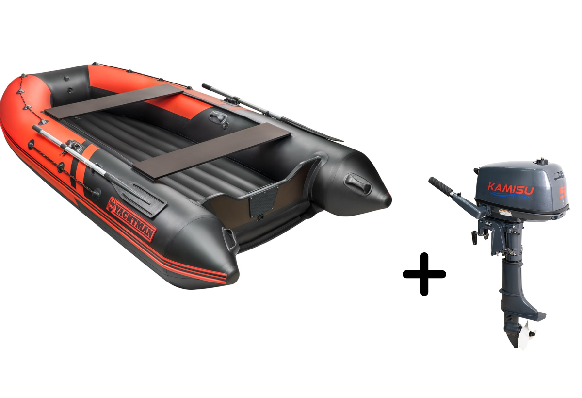 Представляем вашему вниманию профессиональный комплект для активного отдыха — надувная лодка YACHTMAN-340 НДНД в стильном красно-чёрном исполнении с надёжным мотором KAMISU T 5 BMS. Этот тандем создан для тех, кто ценит комфорт, мощность и надёжность.