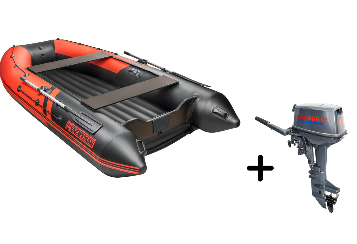 Представляем вашему вниманию профессиональный комплект для активного отдыха — надувная лодка YACHTMAN-340 НДНД в стильном красно-чёрном исполнении с мощным мотором KAMISU T 9.8 BMS. Этот тандем создан для тех, кто ценит надёжность, комфорт и мощность.