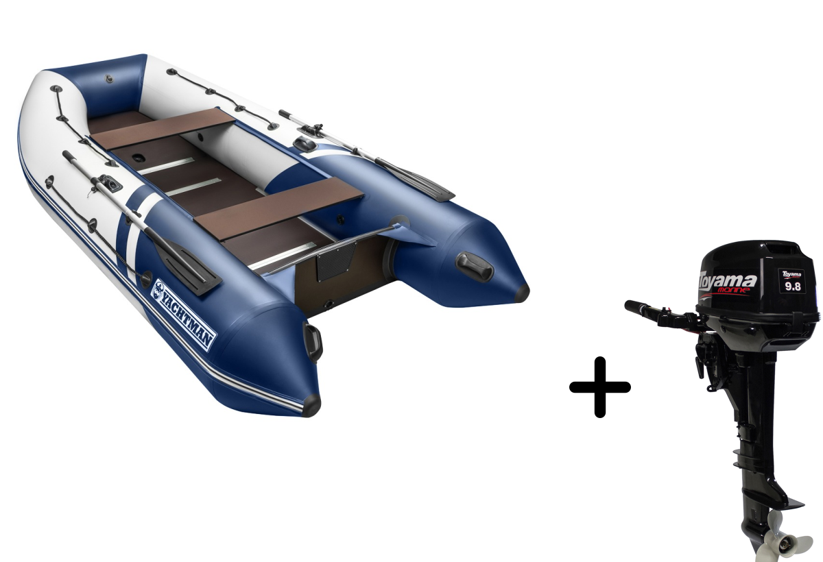 Представляем вашему вниманию стильное решение для активного отдыха — надувная лодка YACHTMAN-340 СК в элегантном бело-синем исполнении с надежным мотором Toyama T 9.8 BMS. Этот комплект создан для тех, кто ценит качество, мощность и стиль.