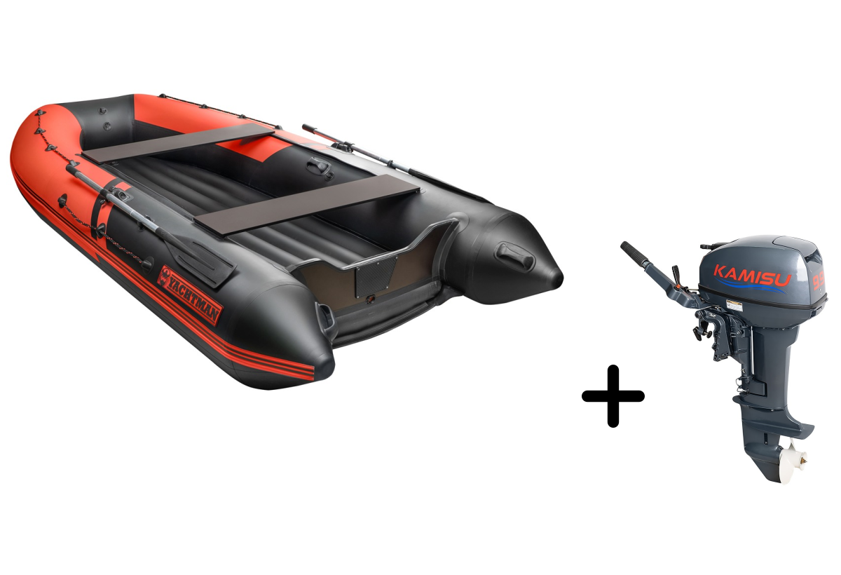 Представляем вашему вниманию профессиональный комплект для активного отдыха — надувная лодка YACHTMAN-360 НДНД в стильном красно-чёрном исполнении с мощным мотором KAMISU T 9.9 BMS. Этот тандем создан для тех, кто ценит надёжность, комфорт и мощность.