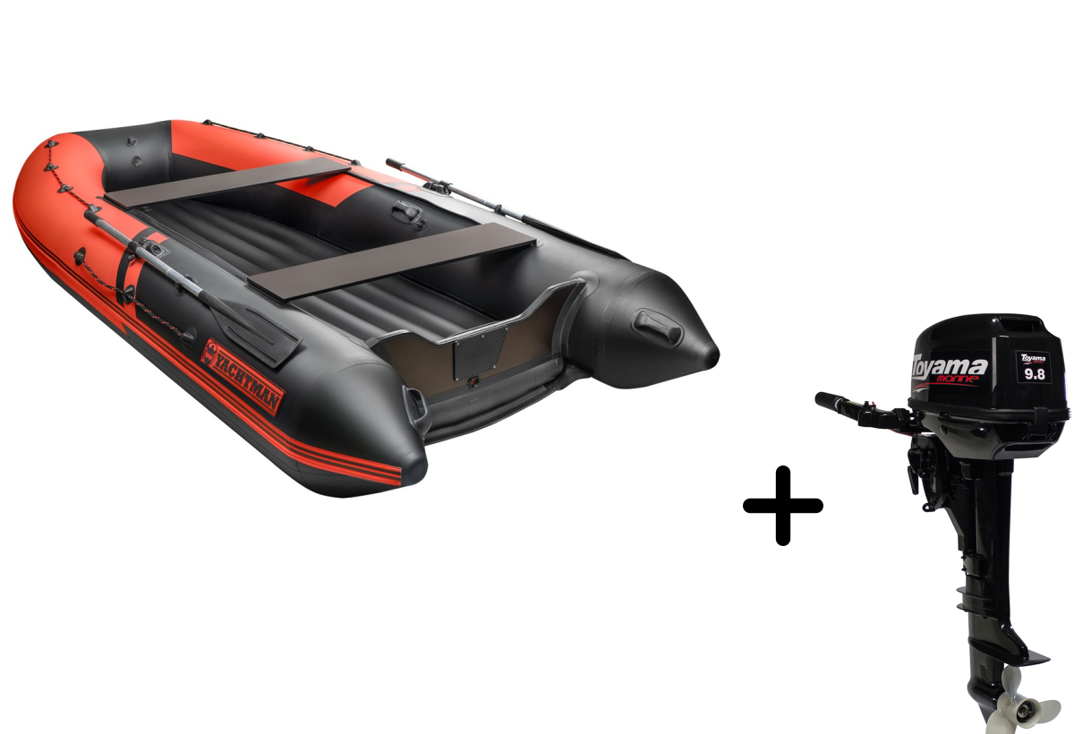 Представляем вашему вниманию профессиональный комплект для активного отдыха — надувная лодка YACHTMAN-360 НДНД в стильном красно-чёрном исполнении с надёжным мотором Toyama T 9.8 BMS. Этот тандем создан для тех, кто ценит комфорт, мощность и надёжность.